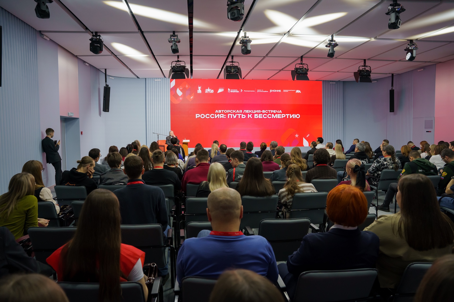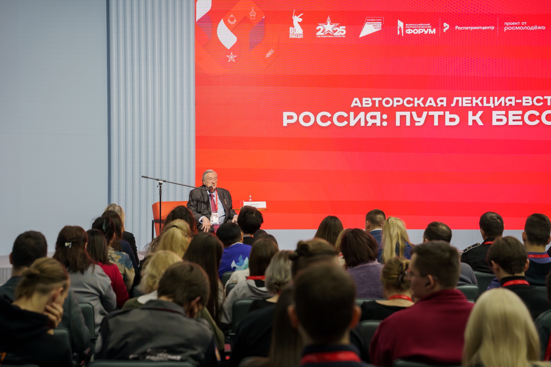 Специально для Александра Андреевича организаторами из Роспатриотцентра была выделена отдельная секция, на которой он выступил с авторской лекцией на тему «Россия: путь к бессмертию». Александр Андреевич рассказал молодежи об историческом пути России, который, по его мнению, должен привести страну к бессмертию, после чего в свободном формате пообщался с аудиторией.