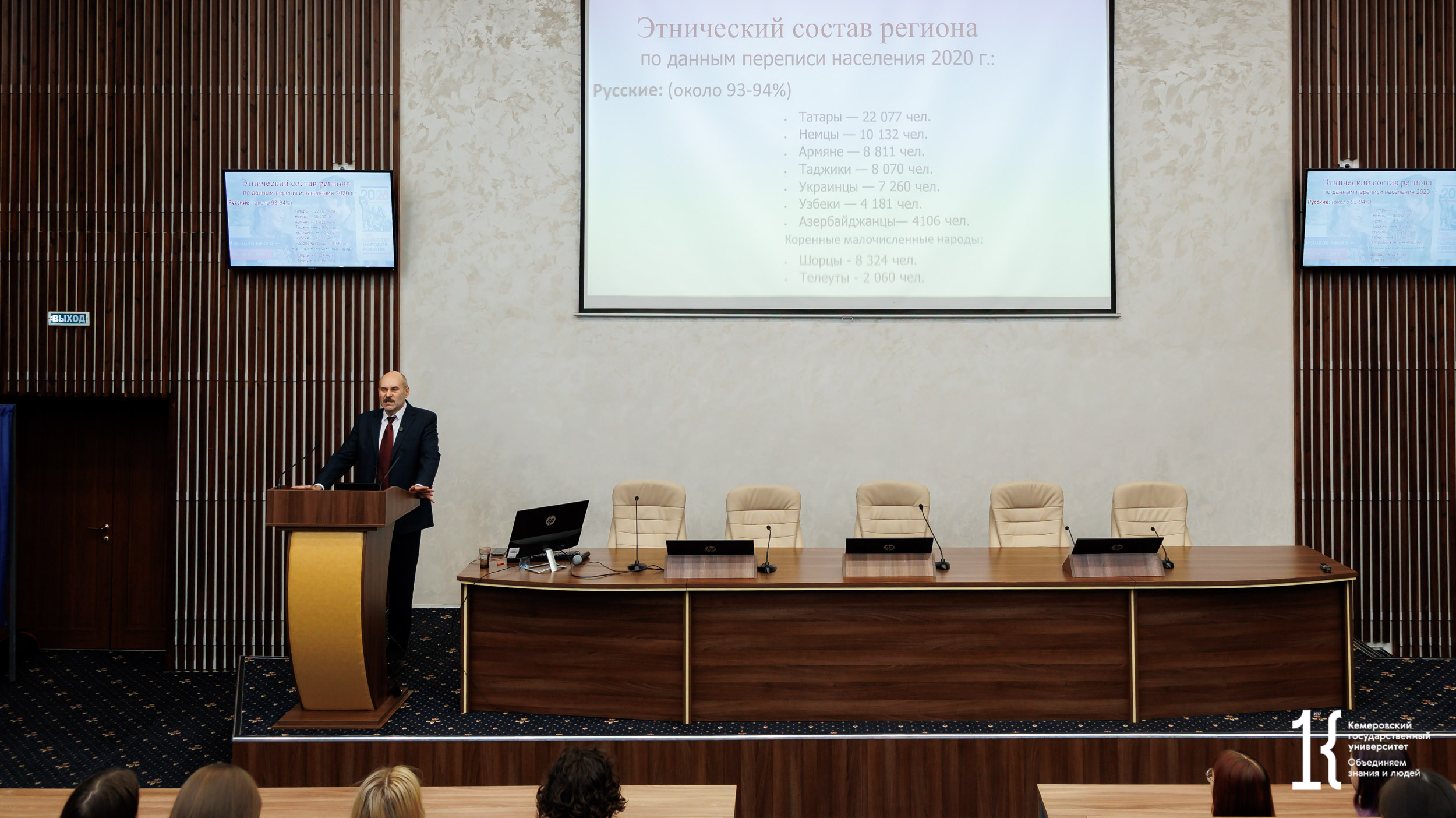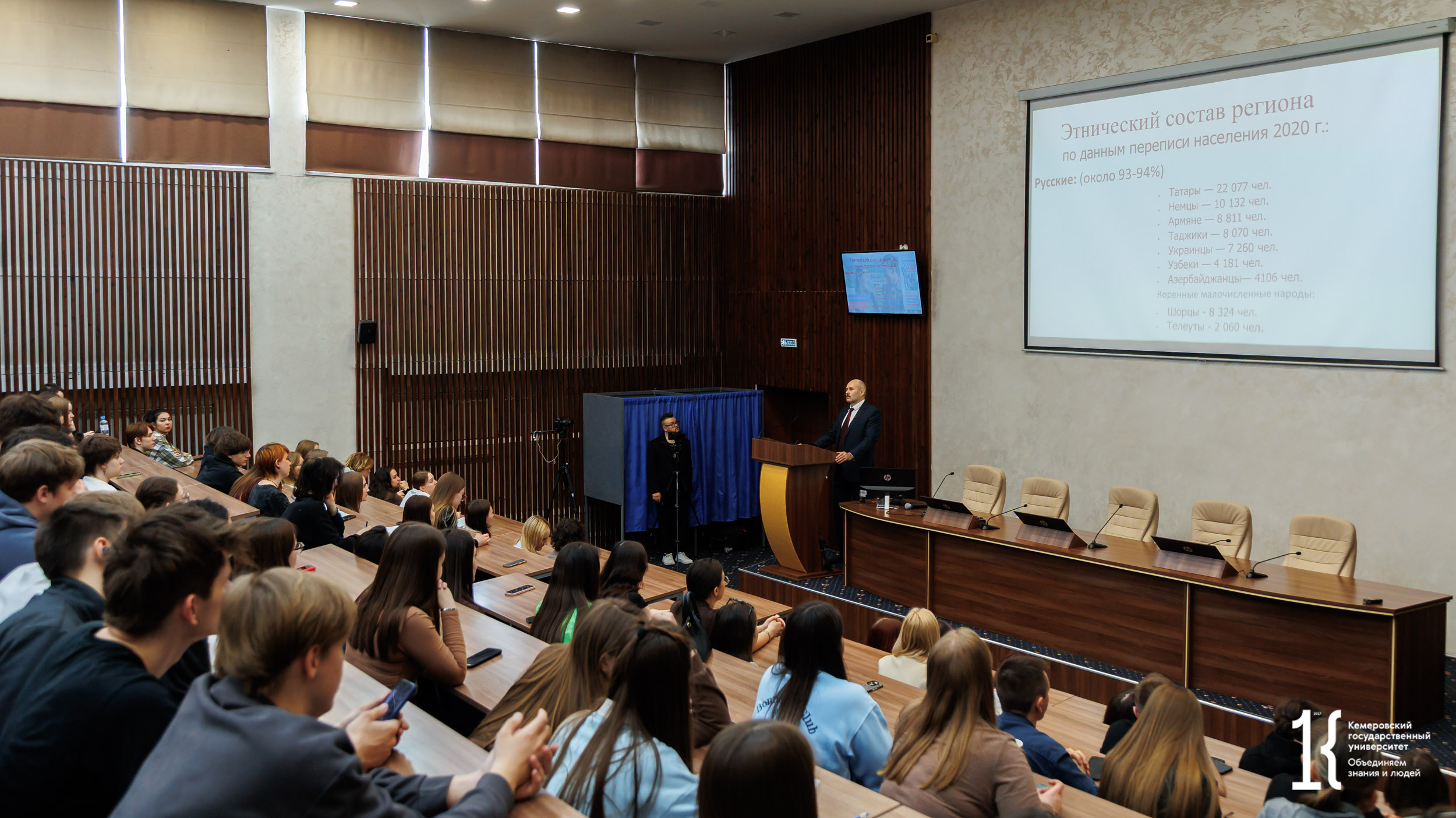 10 апреля 2026 года в Кемеровском государственном университете (КемГУ) доктор политических наук, профессор кафедры Философии и общественных наук КемГУ Сергей Николаевич Чирун прочитал лекцию «Образ будущего. Межнациональная политика как фундамент суверенитета России», собравшую более 200 студентов, преподавателей и представителей национальных объединений региона.