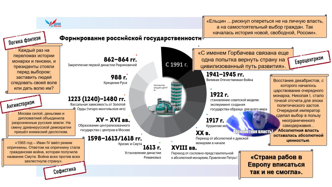 — Ельцин-центр и подобные проекты служат примером того, как через культурные формы Запад пытается уничтожить наше суверенное мировоззрение. Мы же должны научить студентов мыслить цивилизационно и стараться всегда оборачивать подобные попытки против тех, кто их предпринимает.