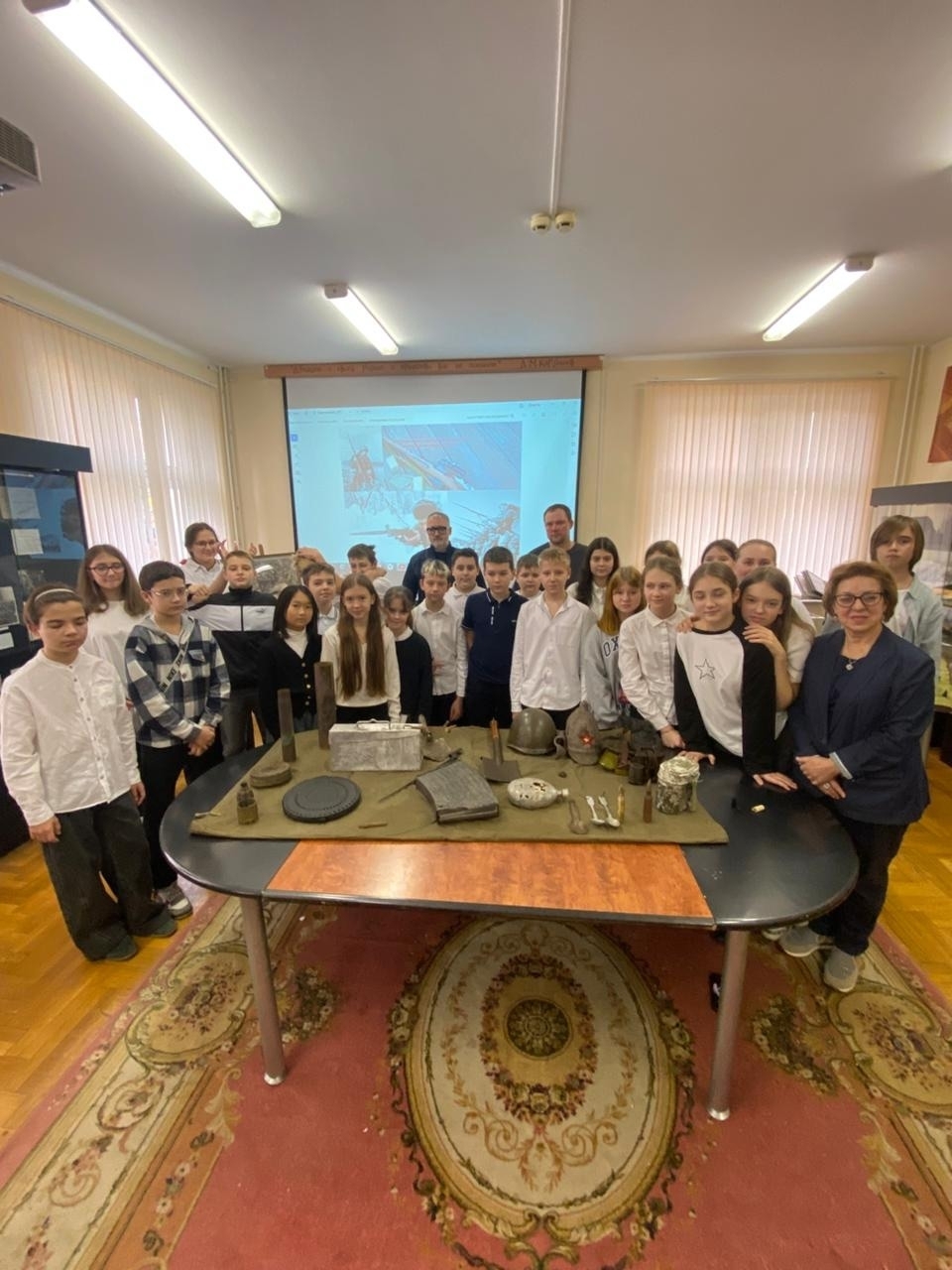 23 октября 2025 года в московской школе № 354 имени генерала Д. М. Карбышева состоялась встреча учащихся 6 «В» класса с представителями отряда «Русь» Поискового центра «Обелиск». Мероприятие прошло в рамках реализации проекта «Живая память Победы: вспомним всех поимённо!», ставшего победителем конкурса Фонда президентских грантов и реализуемого «Обелиском» совместно с Движением «Русская Мечта».