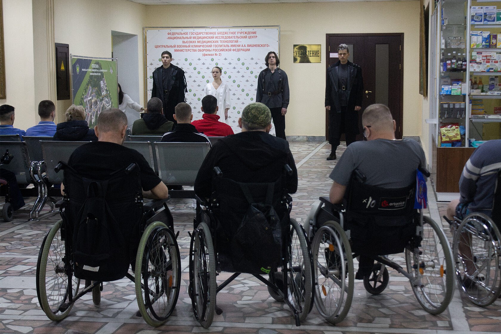 Адаптированная версия постановки Московского театра концептуальной музыки уже показана в госпиталях и реабилитационных центрах для участников СВО, а также в ряде городов России. Артисты отметили глубокую эмоциональную отдачу зрителей: после выступления раненые бойцы и медперсонал долго аплодировали и выражали благодарность.