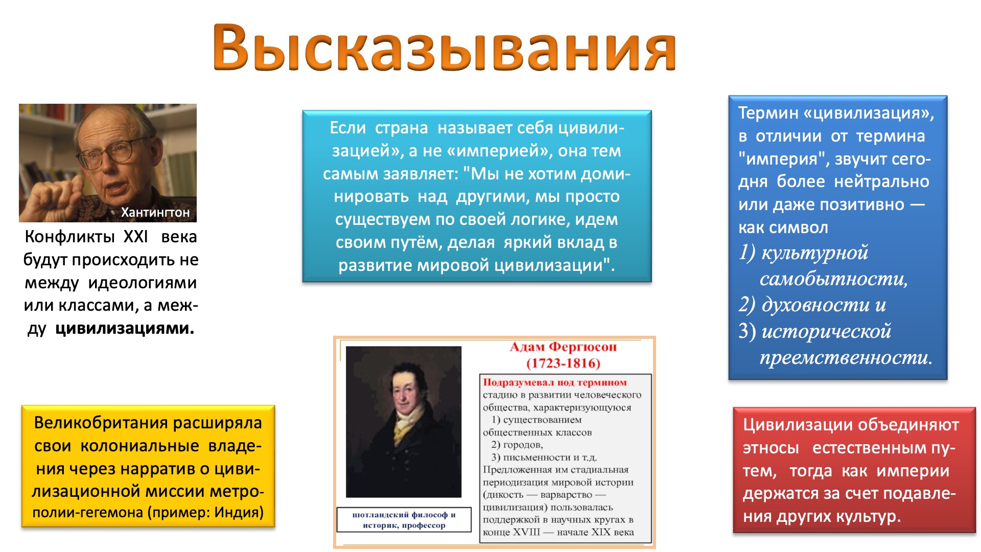 — Если страна называет себя цивилизацией, а не империей, она тем самым заявляет, что не претендует на доминирование над другими, а просто существует по своей логике и идёт своим путём, делая вклад в развитие мировой цивилизации. Термин «цивилизация», в отличие от термина «империя» звучит сегодня более нейтрально или даже более позитивно. Он подразумевает самобытность, духовность и историческую преемственность.