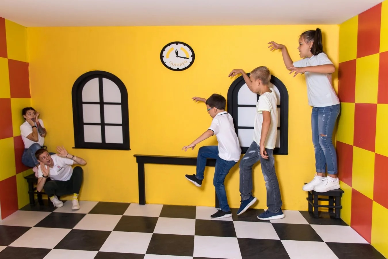 Прогулка по Парку начинается со знакомства с умными экспонатами и необычными конструкциями в IQ-зоне. Все они основаны на физических явлениях и возможностях человеческого организма. Приключение продолжается в лабиринте иллюзий. После IQ-зоны посетитель попадает в увлекательный мир, где не действуют законы физики. Здесь можно ходить по стенам и потолку, нарушить законы гравитации, почувствовать себя космонавтом и даже раствориться в зеркале. В финале гостей Парка ждёт мистический Зеркальный лабиринт, выход из которого могут найти не все.
