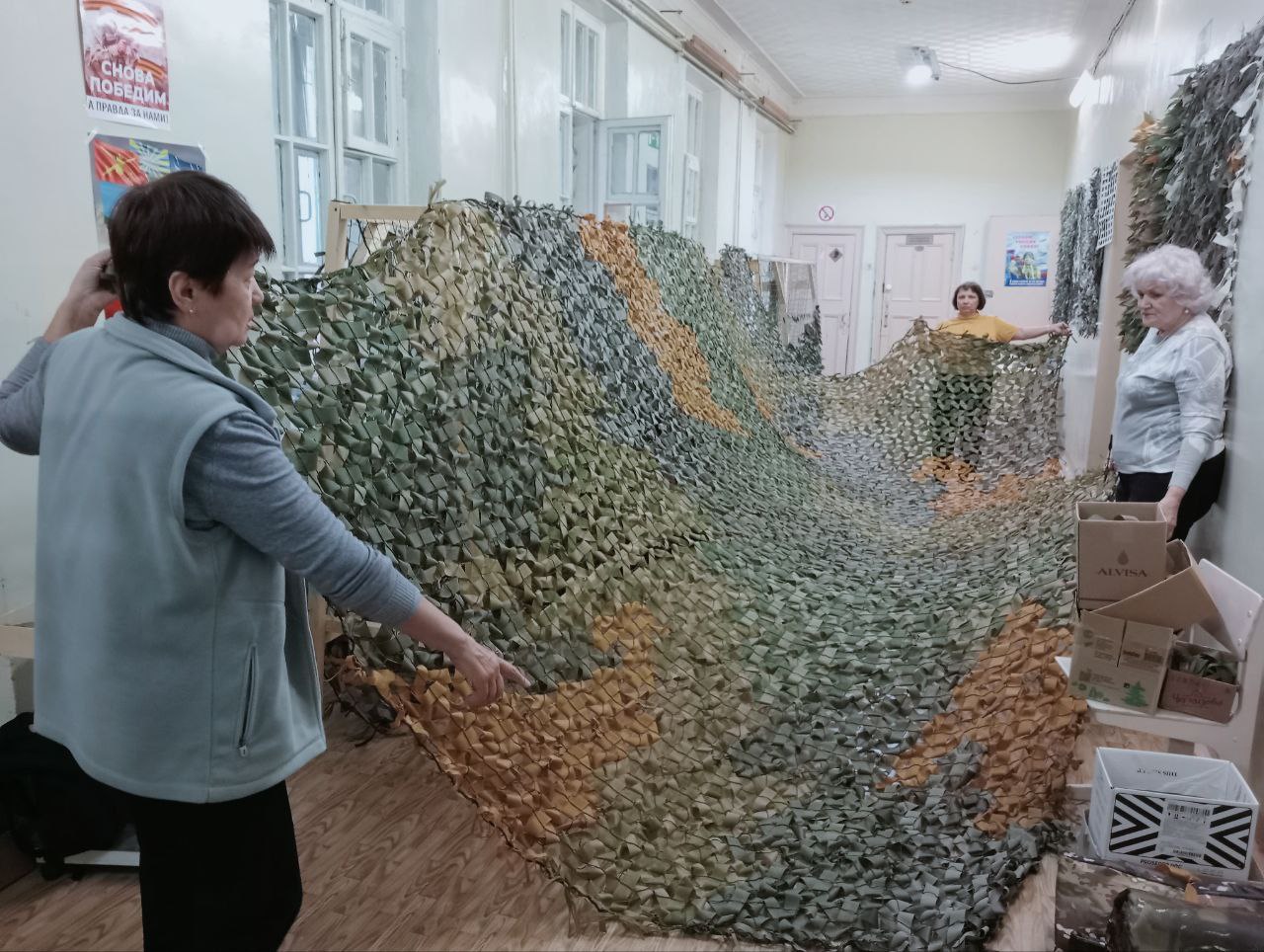 Волонтёрами Движения «СВОих не бросаем! 40RUS» в Обнинске открыта Народная мастерская, куда приходят люди разных профессий и возрастов, желающие принять участие в плетении маскировочных сетей и изготовлении другой продукции, крайне необходимой на фронте.